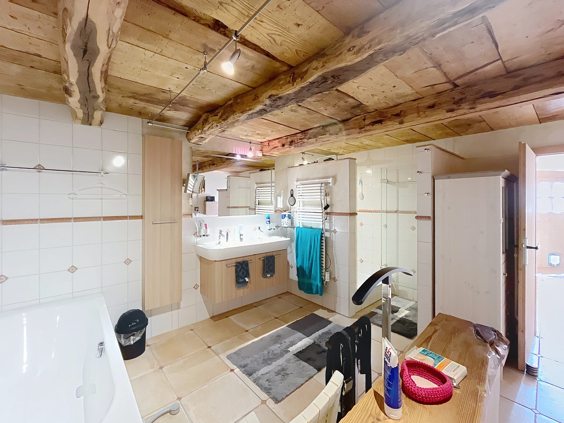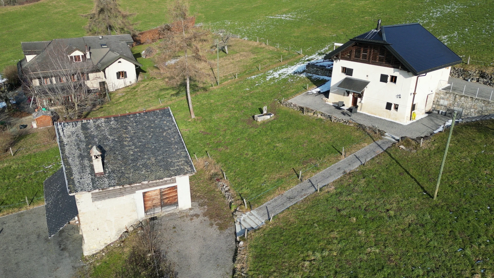La maison principale construite sur 2 étages plus une mezzanine, dispose de 3,5 pces et a été rénovée en 2024 : chauffage au sol par pompe à chaleur, tuiles photovoltaïques, toiture refaite à neuf, isolation, etc... .