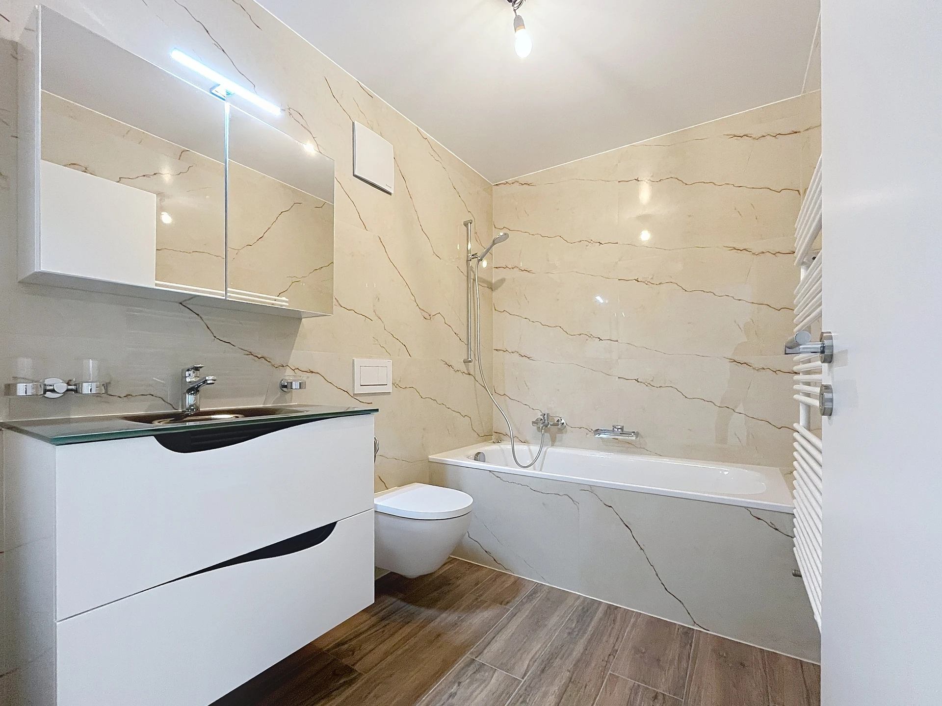 Avec un grand séjour et sa cuisine ouverte, deux chambres, deux salles de bains et deux toilettes, cet appartement est parfait pour une famille ou un couple à la recherche d'un espace moderne et élégant. La surface habitable est de 103m2 avec deux balcons de 21m2 au total