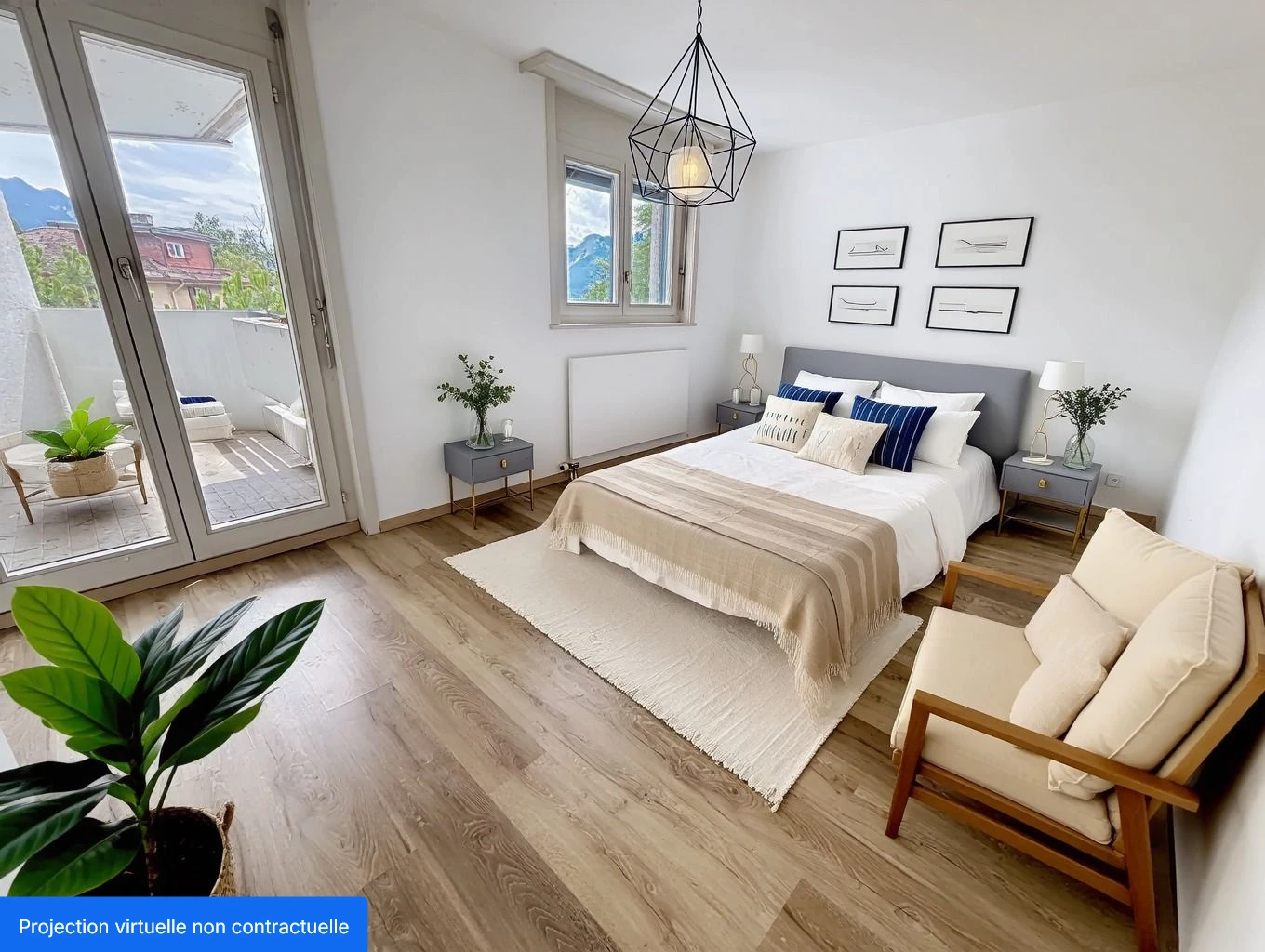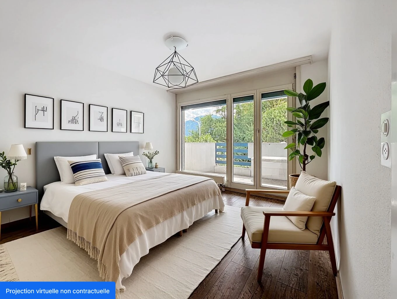 Il dispose de deux balcons, côté Sud accès depuis le séjour et côté Sud-Ouest accès depuis les deux chambres, ce qui lui donne une excellente luminosité.